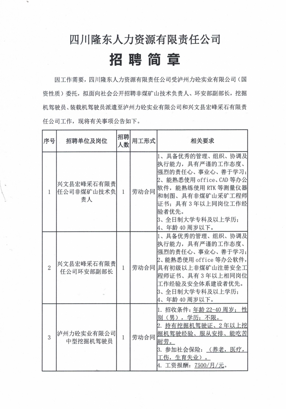 招聘非煤礦山技術(shù)負(fù)責(zé)人、環(huán)安部副部長,挖掘機(jī)駕駛員