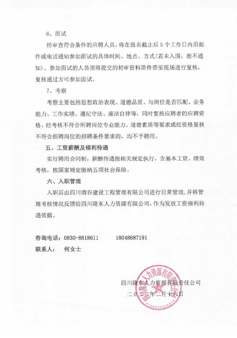 關(guān)于招聘派遣至四川酒谷建設(shè)工程管理有限公司勞務(wù)工作人員的公告