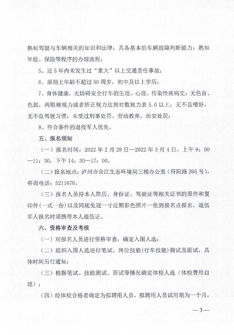 關(guān)于瀘州市合江生態(tài)環(huán)境局公開招聘駕駛員的公告
