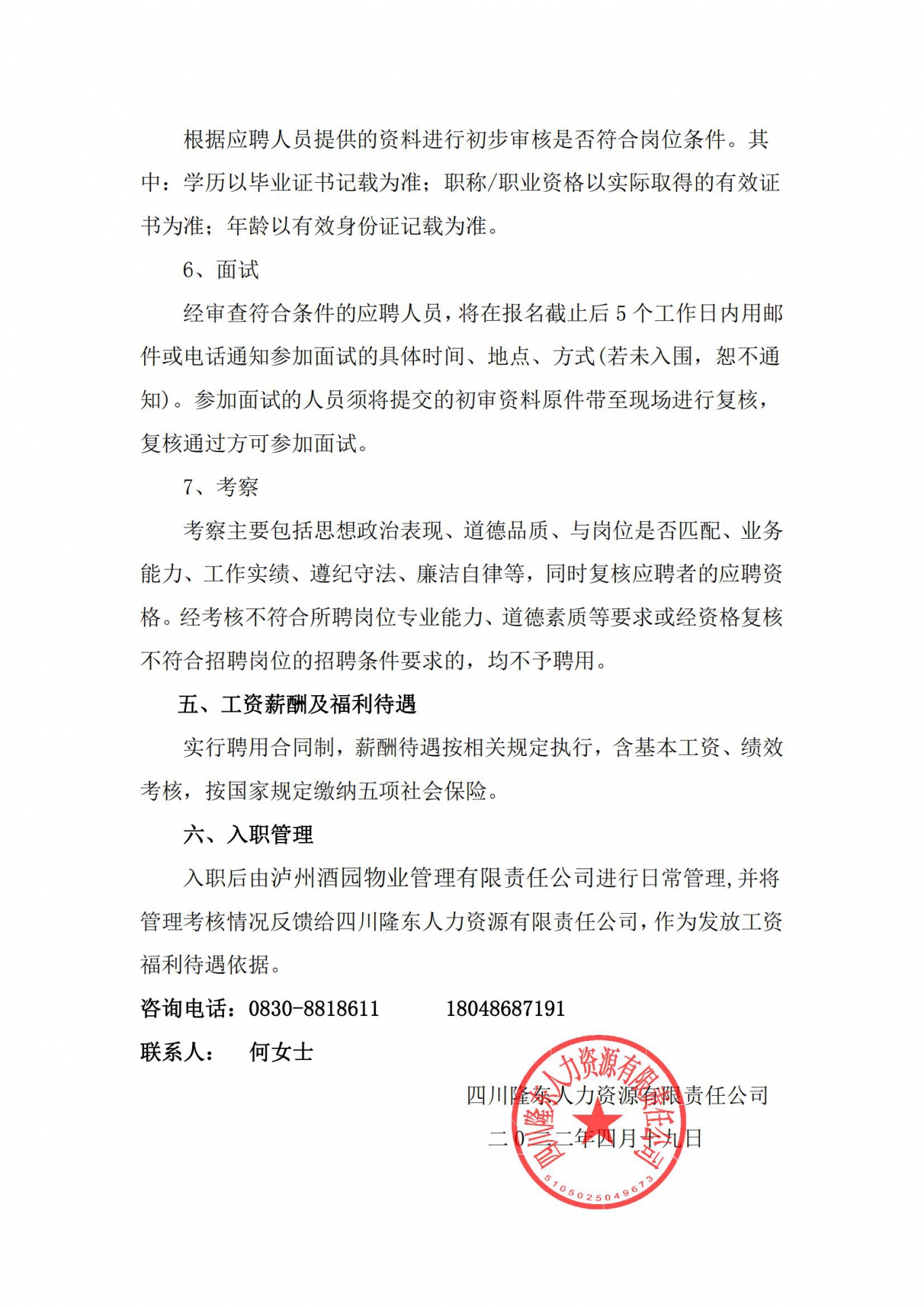 瀘州酒園物業(yè)有限責任公司招聘公告