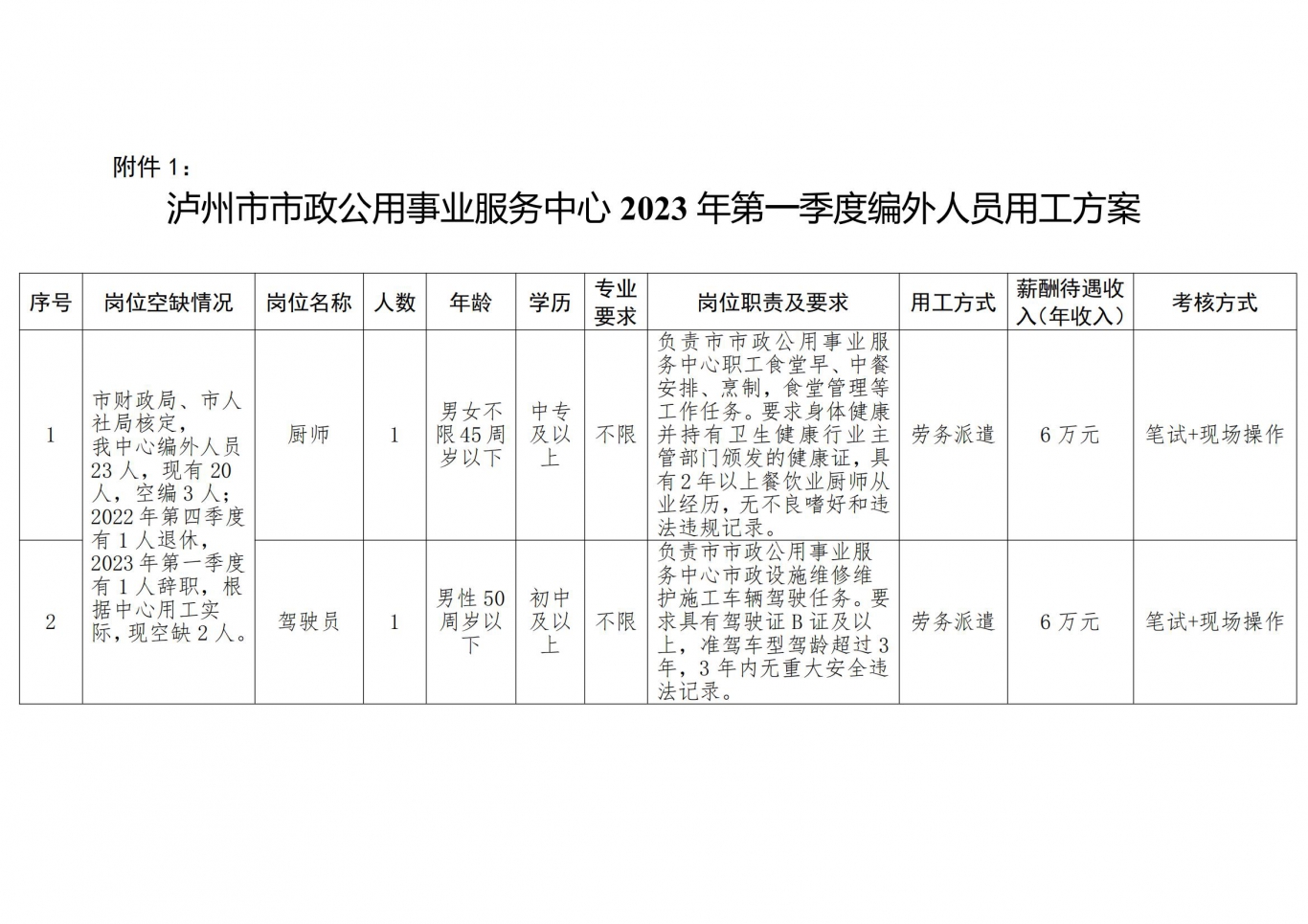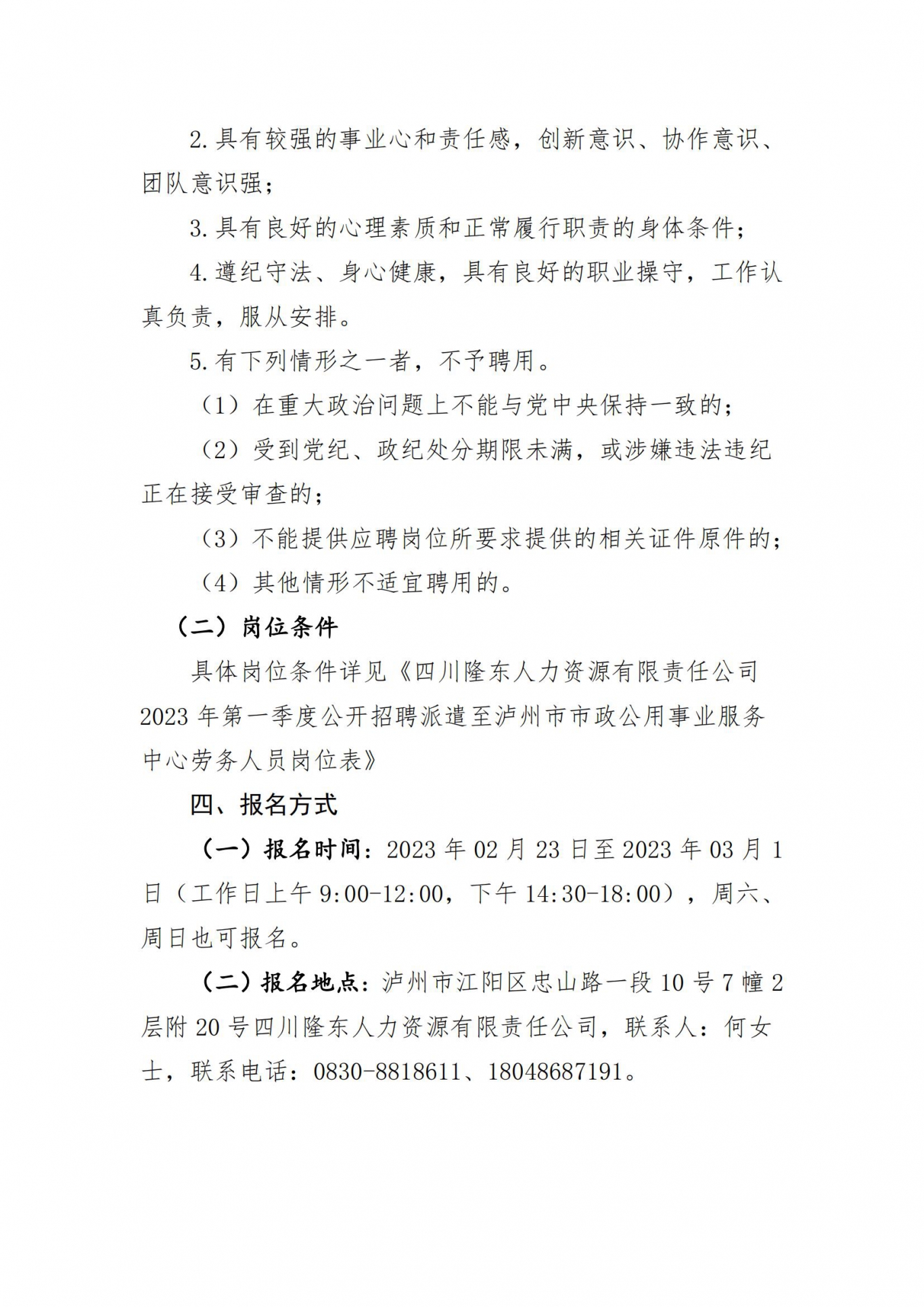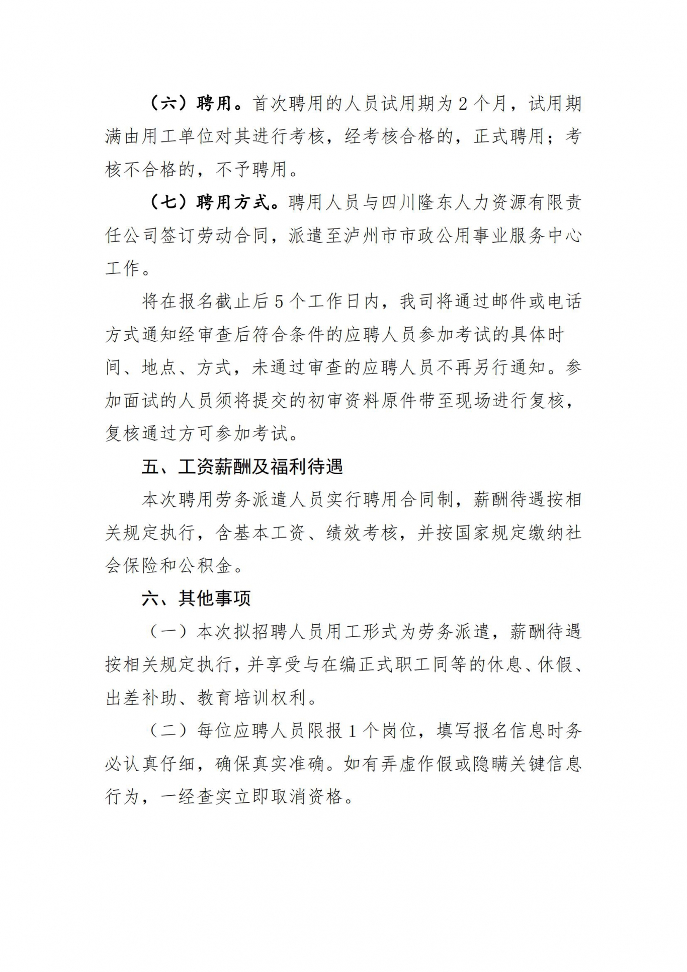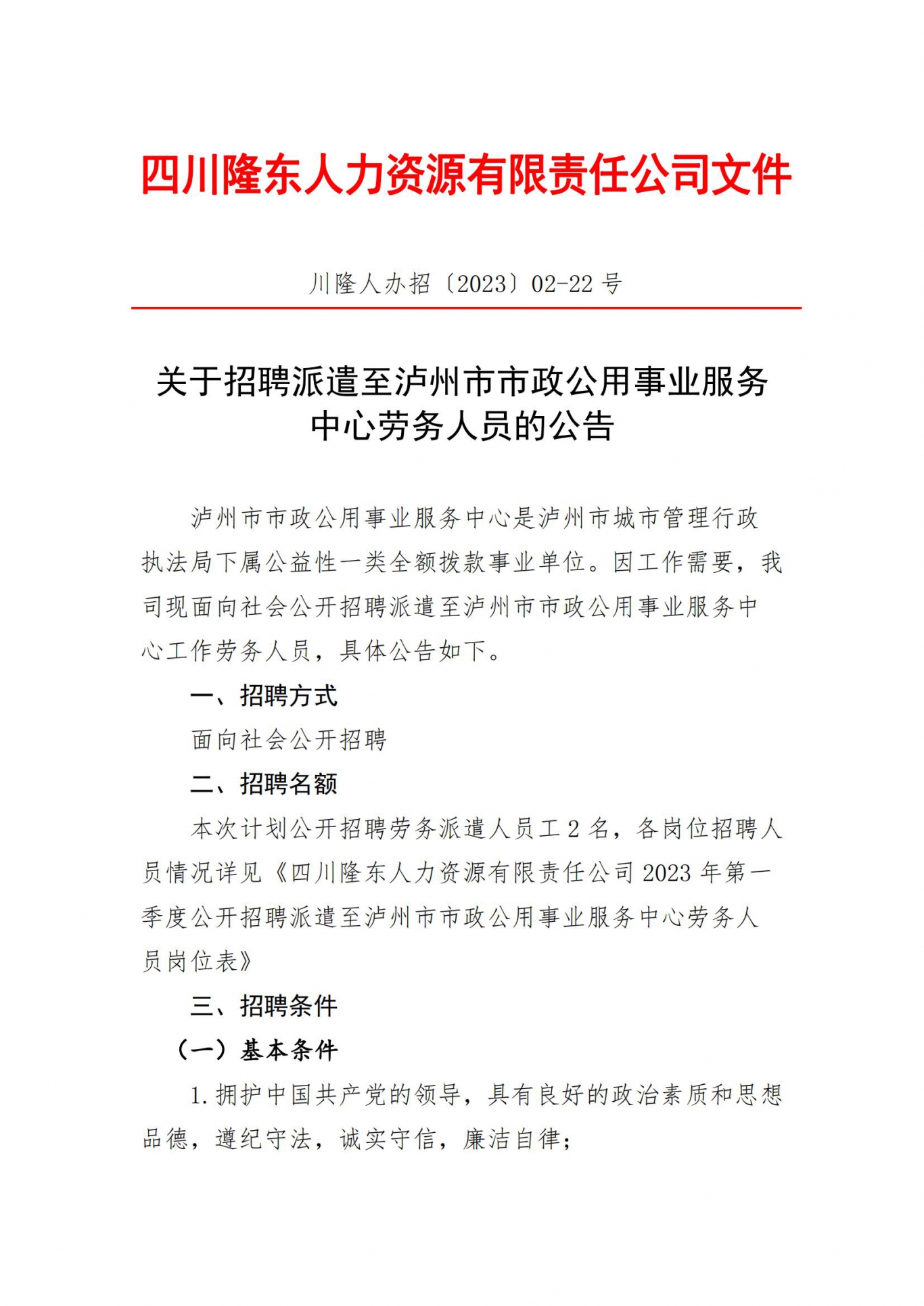 關于招聘派遣至瀘州市市政公用事業(yè)服務中心勞務人員的公告