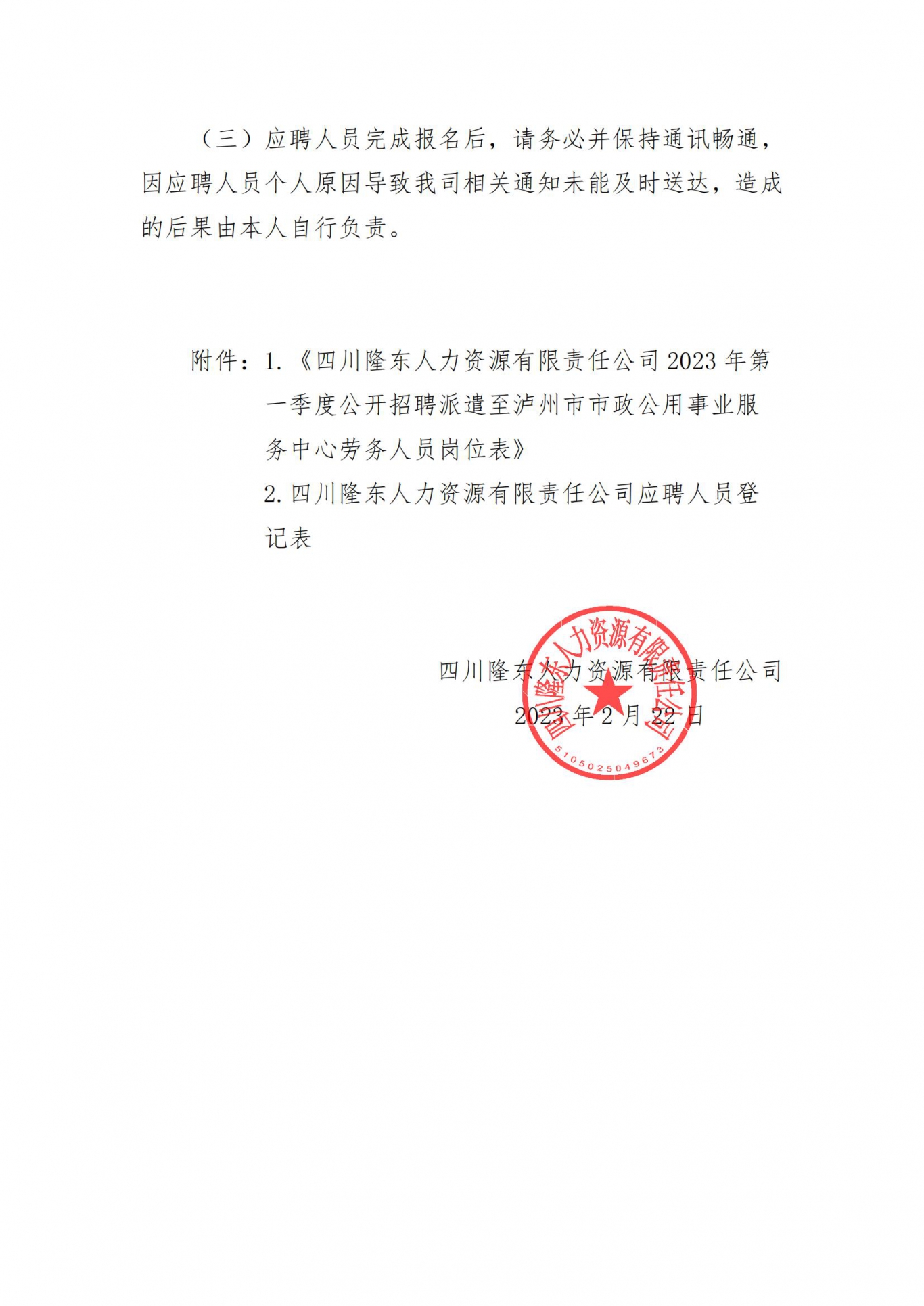 關于錄用派遣至瀘州白酒產業(yè)園區(qū)綜合服務器中心勞務工作人員的公...