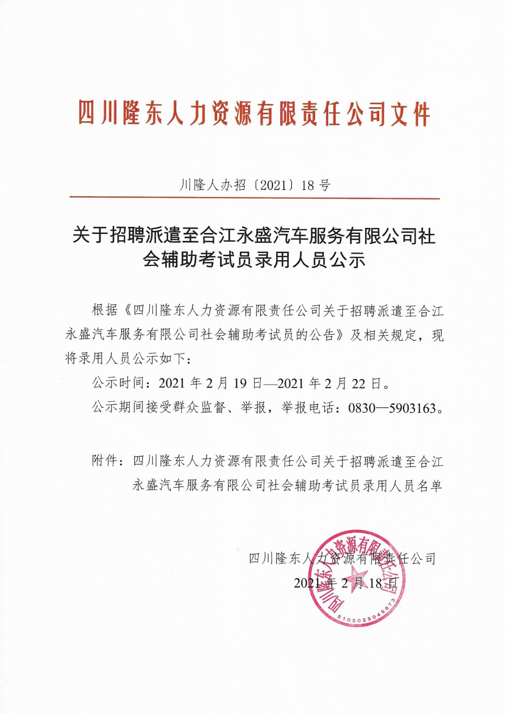 關(guān)于錄用派遣至瀘州白酒產(chǎn)業(yè)園區(qū)綜合服務(wù)中心勞務(wù)工作人員的公示